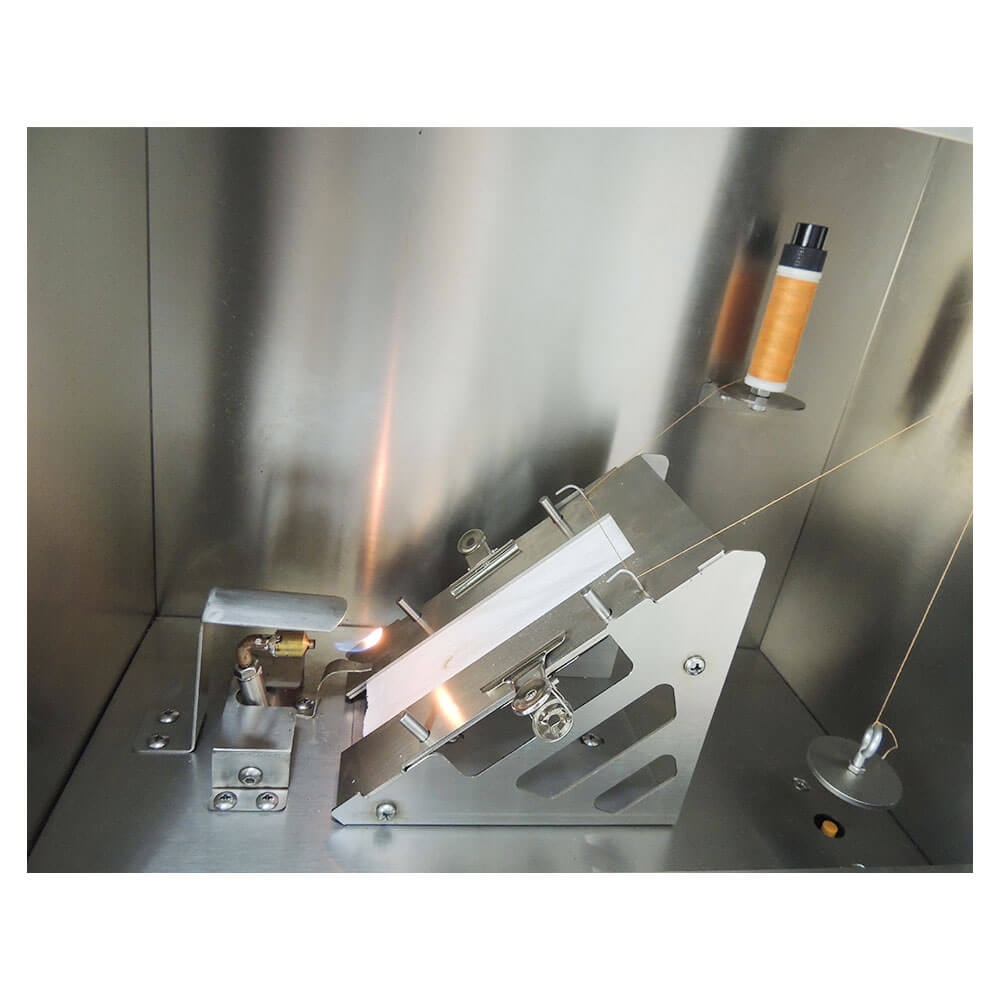 45 Degree Flammability Tester, is to determine the fabric flammability (fabric burning test) under controlled conditions. This model 45 degree flammability test chamber is also suitable to evaluate the flammability of medical textiles such as medical face masks, surgical gowns, protective clothing, and drapes.