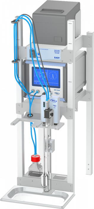 The Tamson AKV EASY determines automated kinematic viscosity which complies with test methods ASTM D445, IP 71 and ISO 3104 using an Ubbelohde viscometer. The viscosity of Newtonian fluids can be most precisely determined using glass capillary viscometers. The upgrade kit can be used together with Tamson viscosity baths (TV4000MKII, TV4000DC, TV2000MKII and OEM baths) that are currently used in the field, or bought as a new bath, for manual viscosity determinations. With the upgrade kit, the user can upgrade from manual determinations to automated kinematic viscosity. The modular AKV EASY is a measuring system that includes everything you need to make precise and reproducible measurements. For the upgrade, the measuring head, AKV EASY, a new cover, AKV E/A Ubbelohde viscometers and a tower (consisting of a frame, tubing, printer, fluid trap, power supply and spill tray) are needed. The AKV EASY is operated by a user-friendly touch screen. Two different versions of the AKV EASY are available: single channel and dual channel. Dual channel allows the performance of simultaneous measurements.A single channel version with a semi-automated cleaning module will become available by the end of 2020. With the rinsing module, the system will rinse the viscometer with the manually inserted cleaning solvent. Without the rinsing module, the filling and cleaning of the viscometers must be done manually. Infrared light barriers in the measuring head determine the flow time for a sample to pass two marks on a calibrated glass capillary viscometer. The AKV EASY calculates the kinematic viscosity based on the constant of the viscometer and the measured flow time. The AKV EASY is capable of measuring the kinematic viscosity of oils and other Newtonian liquids that are suitable for Ubbelohde viscometers with a range from 0.3 up to 10,000 mm2/s (cSt).