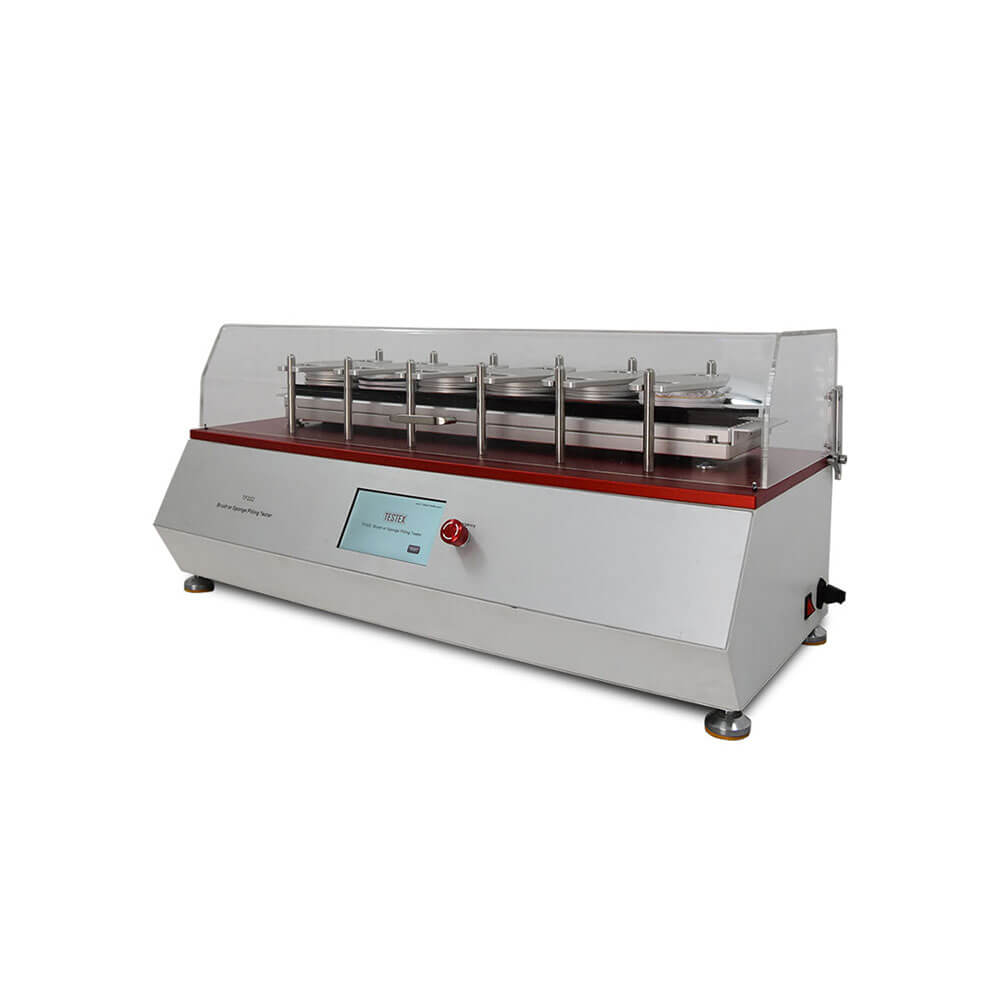 Brush or Sponge Pilling Tester, To determine the pilling propensity and simulate normal wear of knitted and woven fabrics used in apparel and automotive interiors by brush and/or sponging specimens together in a circular motion to form pills. Brush or Sponge Pilling Tester complies with ASTM D3511, FORD BN 12-4, FORD BN 108-03, etc.