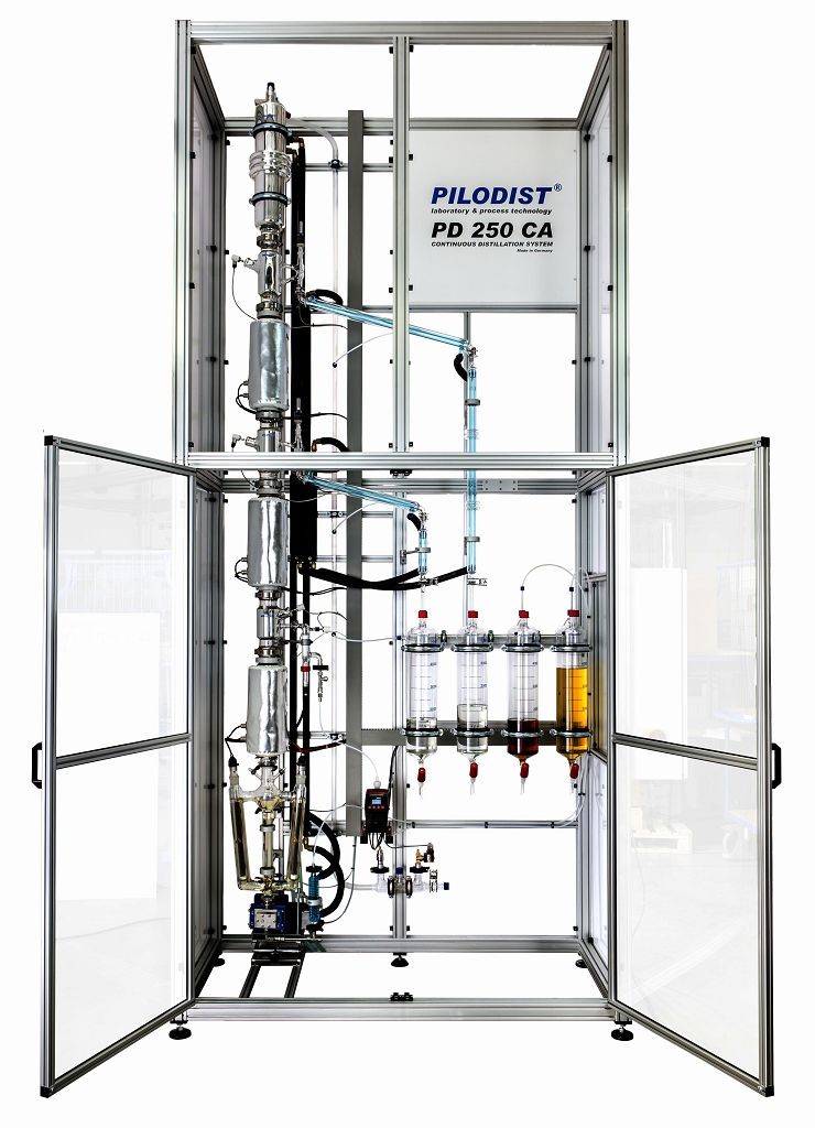 3 Stage continuously working laboratory pilot plant distillation system