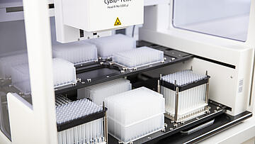 Based on that highly flexible and open platform not only applications such as nucleic acid extraction can be realized with minimum effords and maximum outputs. Further workflows and/or sub-steps such as dilution series, (q)PCR setups and many more can be implemented on CyBio FeliX.
