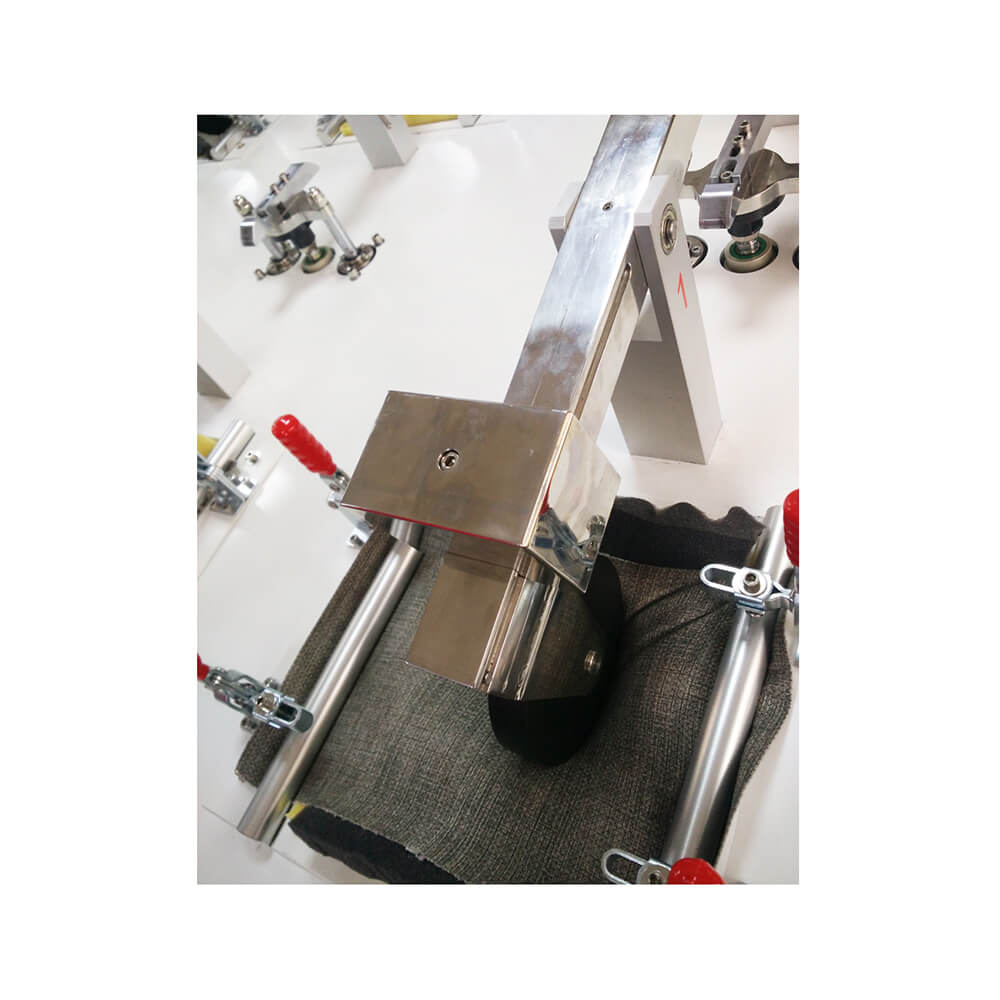 A rubber-faced wheel of 127mm (5”) diameter impacts the fabric from a height of 150mm (6”) with a mass of 3.75 kg (8.25lbs), 25 times per minute for 7000 cycles. Besides, the Dynamic Seam Fatigue Tester has 3 work positions and 6 positions complying with the requirement. Moreover, it can make 23 or 27 cycles in one minute. Thus, it can be in operation at a relatively high speed.