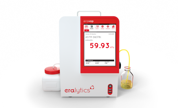ERAVAP is a compact, highly precise, yet easy to use vapor pressure tester. It is known for vapor pressure testing with unmatched precision, speed and versatility over the widest available temperature range from -20 °C to 120 °C (4 °F to 248 °F) on the market. A small footprint and the true portability even with an attached 10-position autosampler make it the ideal choice for stationary and mobile laboratories.