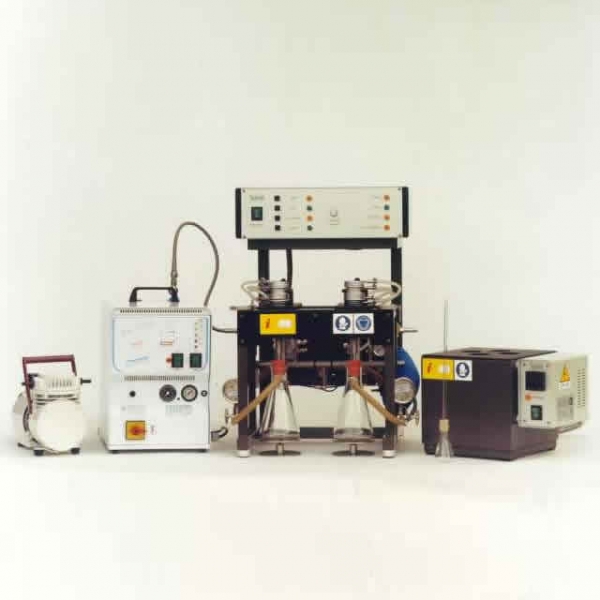 The apparatus consists of a support hosting two filtering units. A unique mechanism permits to the operator to stay far from hot parts of the instrument during the operations to avoid risks of burnings.