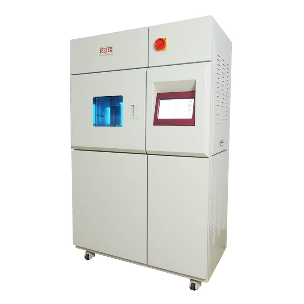 TESTEX Light Fastness Tester TF420 features advanced multi-point change functions, enabling precise online control of light intensity. It automatically detects and adjusts light energy, ensuring optimal conditions. The closed-loop control system meticulously regulates temperature and humidity, while also controlling the blackboard’s temperature circuit. You can call this Weatherometer a Xenon Test Chamber or a Fadeo meter. This is based on these applications. Besides, it can shorten the testing time. It uses xenon arc irradiation in a chamber. So, we can also call it a Xenon Tester.