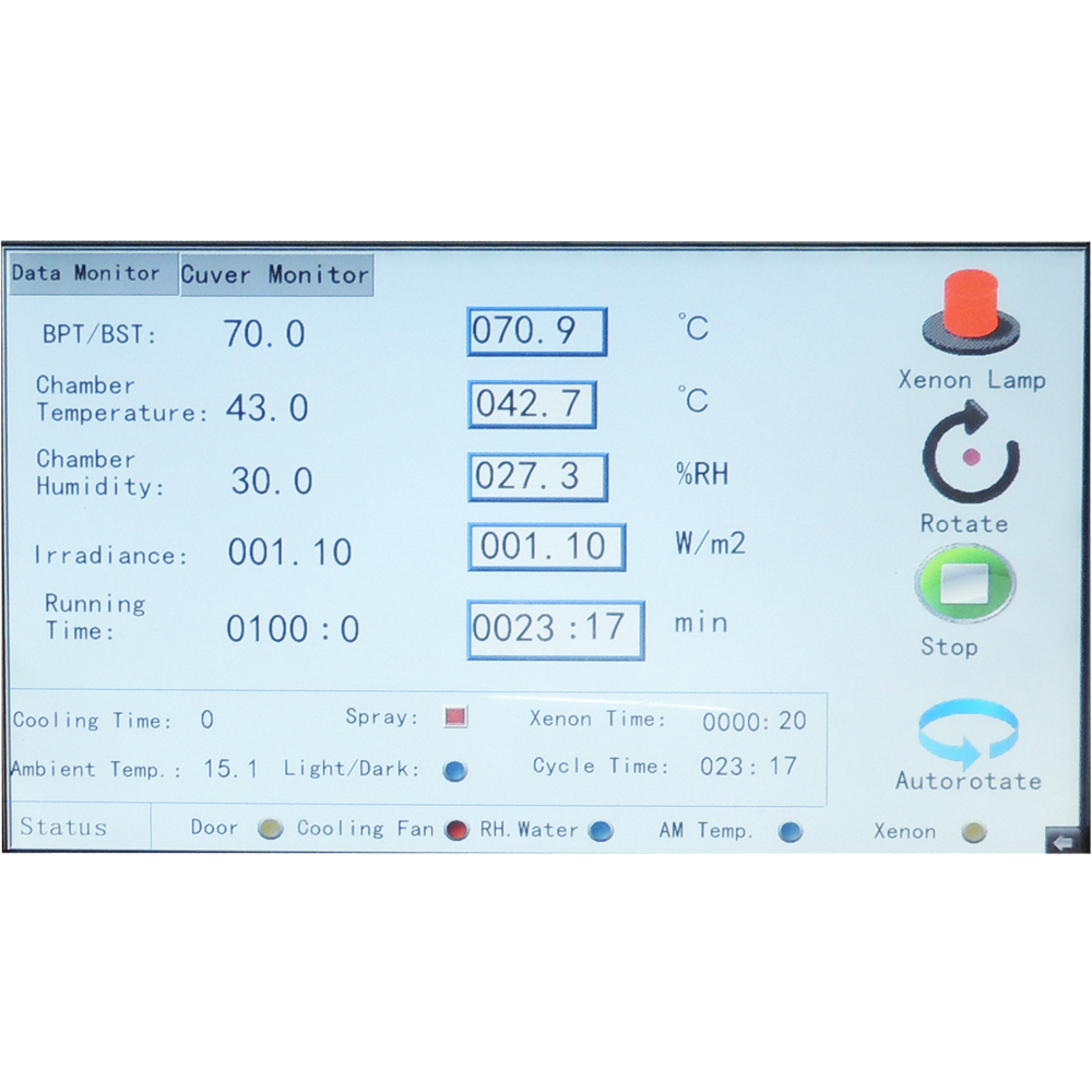 This Sunlight and Weathering Fastness Test Chamber can operate continuously for up to 1000 hours, accommodating high-capacity, long-duration test applications and specific customer requirements.