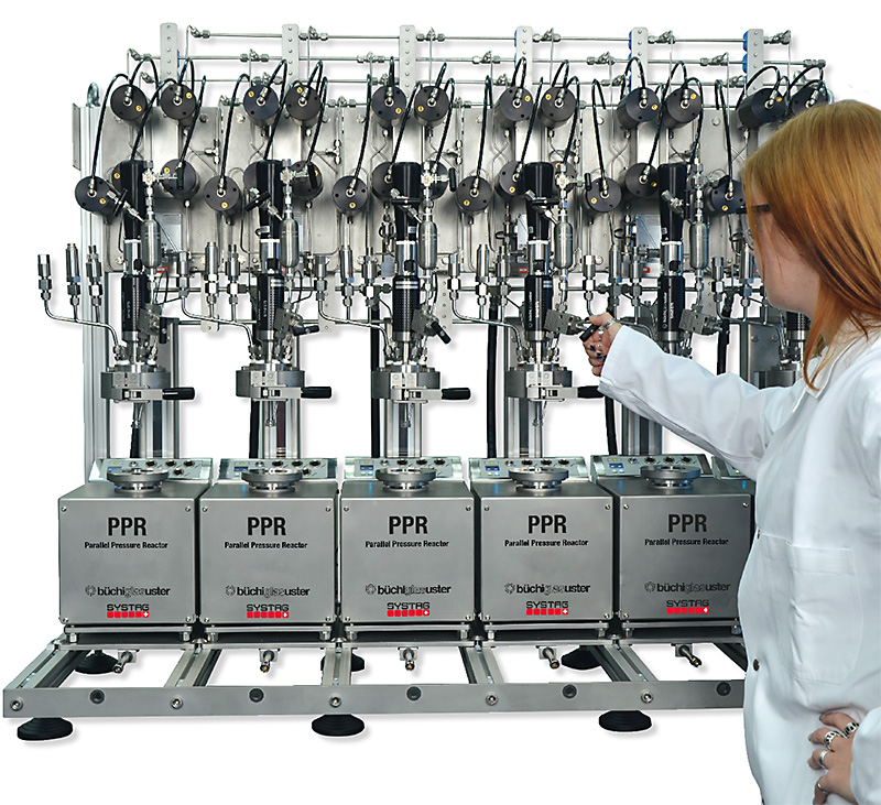 In chemical research, reproducibility and productivity is increased by automation. Up to 6 reactors can be operated in parallel by our Parallel Pressure Reactor system, which dramatically shortens the time for research and development.