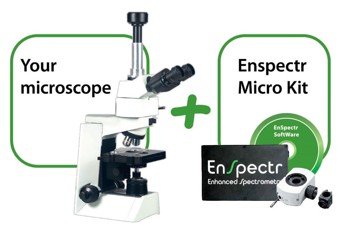 EnSpectr MicroKit® is composed of EnSpectr R532® Scientific Edition, a reflection microscopy tool, digital 3 MP camera, proprietory software (EnSpectr Pro®) with extended functionality for measurement and recognition of spectra. On-line technical support is provided by EnSpectr authorized distributors and the company.