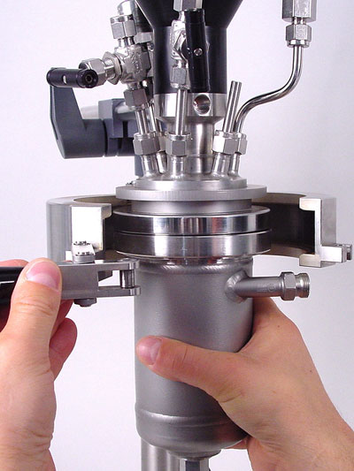 This multipurpose pressure reactor system is designed for the use of interchangeable steel pressure vessels. Safety features guarantee safe reactions under pressure.