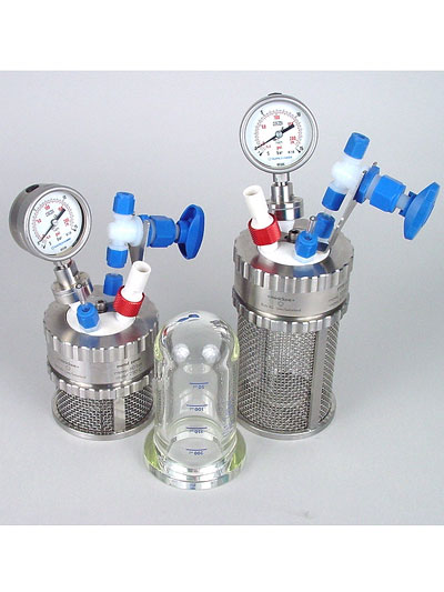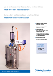 This metal – free pressure reactor system is designed for the use of interchangeable glass pressure vessels. All product touched parts are made of inert (non-metallic) materials. Safety features guarantee safe reactions under pressure.