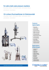 This pressure reactor system is designed for the use of interchangeable pressure vessels in glass, steel, Hastelloy®, Teflon. Safety features guarantee safe reactions under pressure.