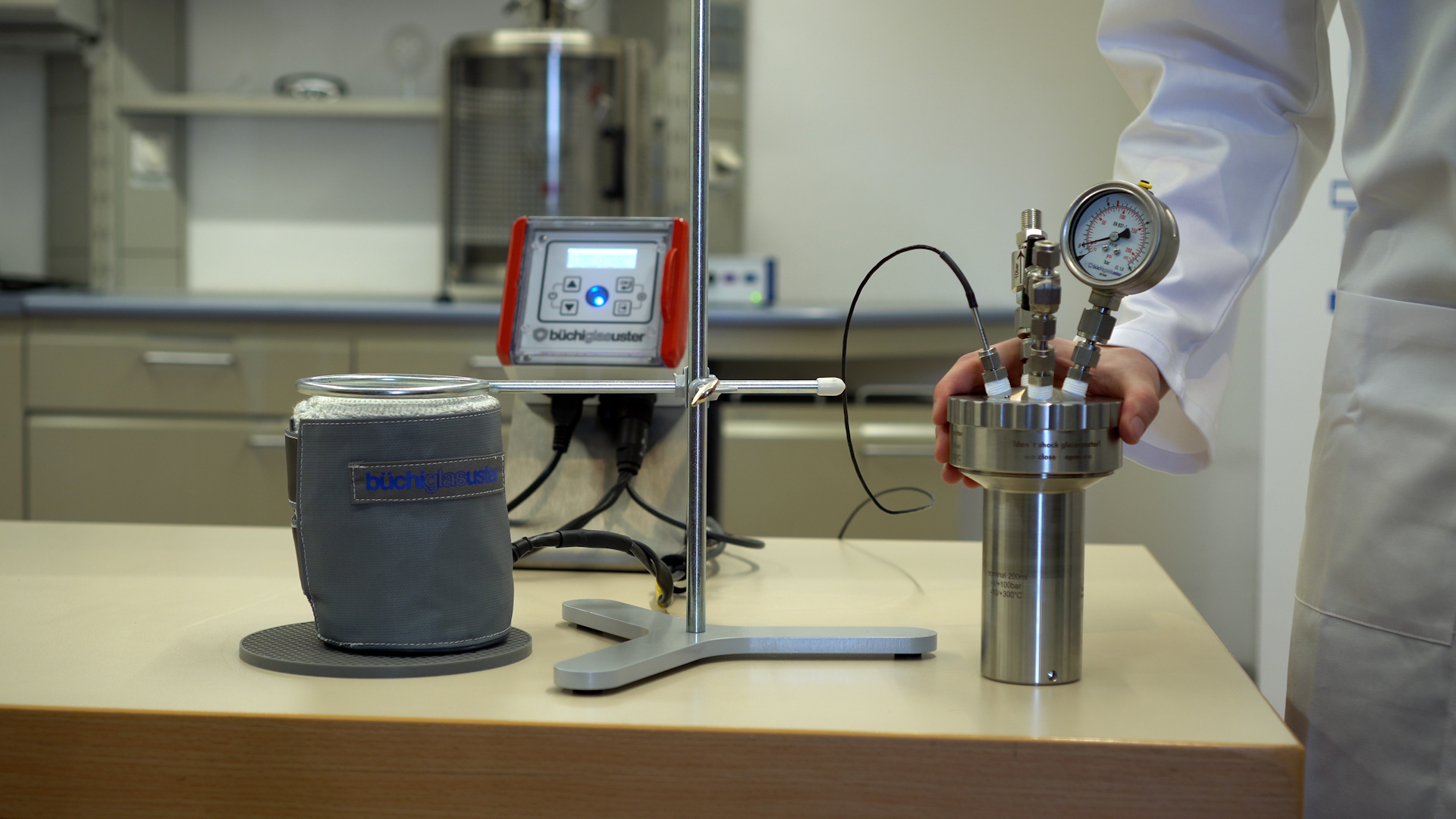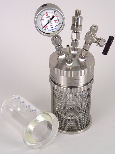 The glass pressure reactors ensure high resistance against acids, while allowing visual process control and monitoring.