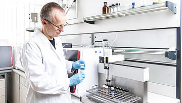 Sample digestion is performed using a long-life high-power UV reactor with two oxidation wavelengths. The particularly high-energy UV radiation at 254 nm and 185 nm oxidizes even extremely stable carbon compounds quickly and completely, and this without any oxidizing agents such as persulfate. Not only does this make operation safer and more economical, it also delivers more accurate results as it avoids distortion of measurement results due to reagent blank values.