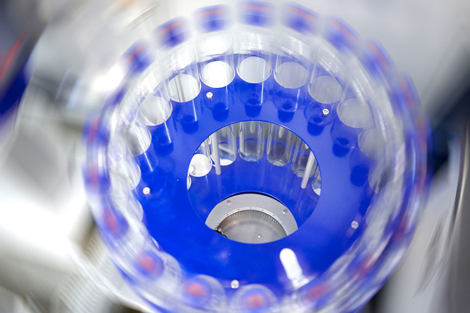 The system measures online the volume of each fraction before each cut is being discharged into an automatic fraction collector with 20 receivers. The fraction collector is equipped with an inbuilt electronic balance to measure the weight of each fraction. By replacing filled receivers the system can handle up to 80 cuts for the distillation of one sample. The receiver change is performed according to pre-selected cut temperatures or when a receiver is filled up to continue the cut sampling in the next receiver (to avoid overfillingof the receiver).