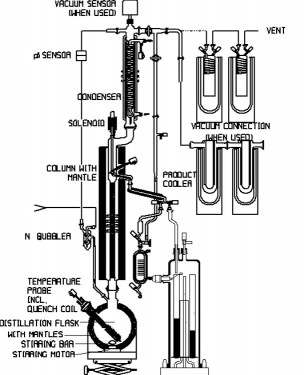 The system is designed for automatic operation of the individual distillation stages, the fraction changes resp. the receiver changes are automatically carried out according to pre-selected boiling temperature or when the receivers are filled up. The vacuum-tight fraction collector contains 9 receivers. The receiver volume is related to the flask size.