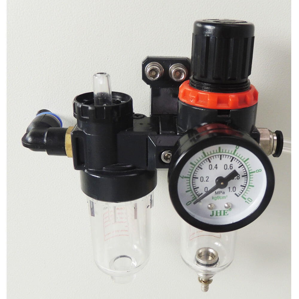 The pneumatic press machine equips with a 125 mm cylinder, a cutting depth of 10mm, and 125 x 125mmn tables. Under the pressure of 100 psi can produce 800kg/f pressure, equipped with a double bond security operation.
