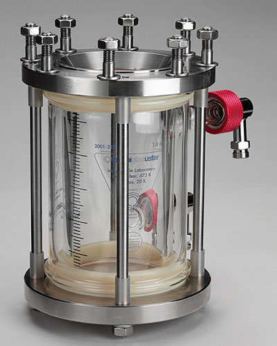 The glass reactors ensure high resistance against acids, while allowing visual process control and monitoring. This is also possible under high pressure by using steel pressure vessels with sight glasses. Various low to high torque magnetic drives ensure efficient mixing and stirring low to high viscosity process media as well as excellent heat transfer.