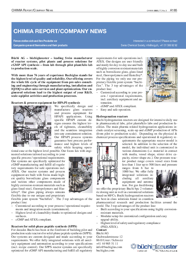 • Multiple safety features guarantee safe hydrogenations and other processes