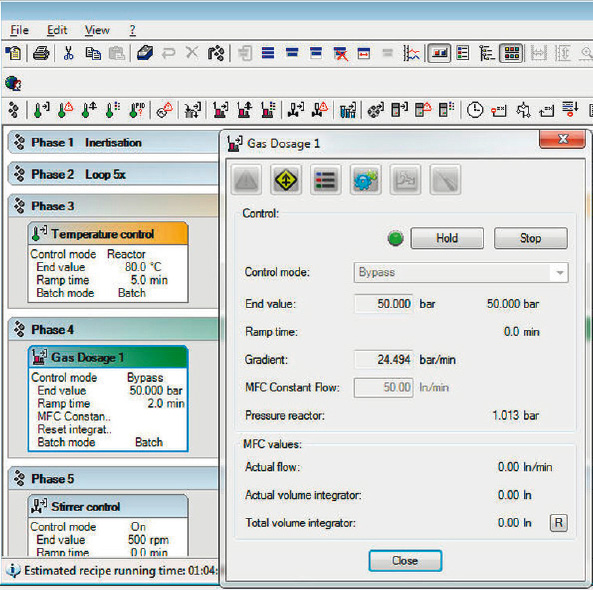 • Manual: The software controls the reactor hardware, data logging of process data