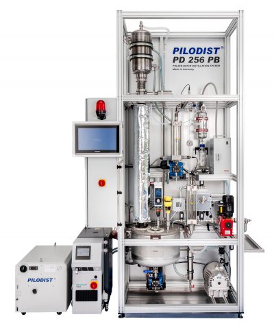 Developed for medium to large scale pilot distillation, the PD 256 offers a high degree of flexibility for processing different kinds of mixtures. Quantities as low as only a few liters up to large campaigns of 1000+ L can be processed with this single unit in automated and unattended 24/7 operation.
