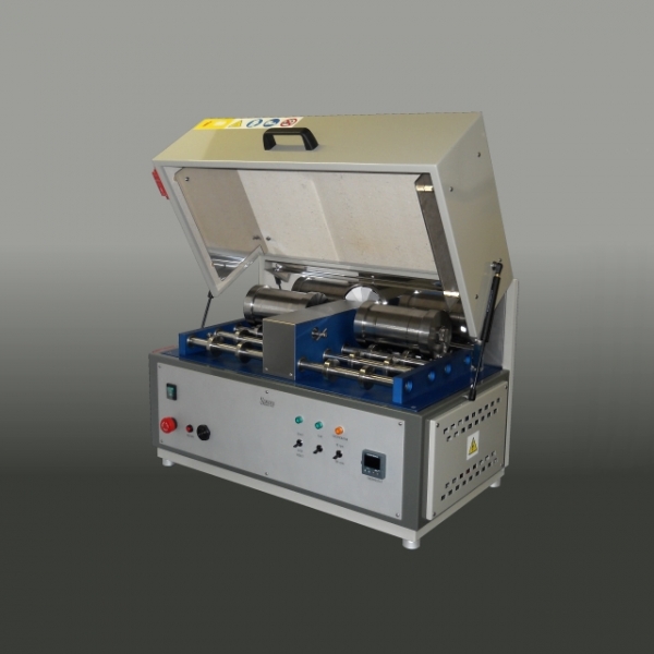 The apparatus, in acc. with ASTM D 1831, consists of a benchtop case with a hinged shield that covers the rolling mechanism vane. Two and four-cylinder units are available.