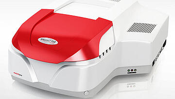 Double-beam spectrophotometer with five variable slit widths and an advanced measurement range from 185-1200 nm, optimal for the measurement of solutions and solids with highest demands on optical resolution, also available as dissolution model.