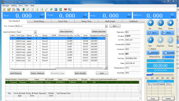 Usually, the maximum stroke is the distance between the upper and lower fixture (test stroke) + the height of the upper fixture + the height of the lower fixture + the height of the sensor. Because different test materials will need different fixtures, choose a good fixture to know the specific test stroke. In general textile testing, the stroke in 600-800mm can be. Material elongation of more than 1000% can be selected stroke 1000 or 1200mm.