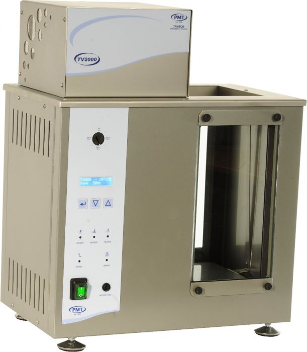The TV2000 can be used for ASTM D1480 and ASTM D1217 tests. The ASTM D1480 method covers two procedures for the measurement of the density of materials which are fluid at the desires test temperatures. ASTM D1217 is to cover the measurement of the density of pure hydrocarbons or petroleum distillates boiling between 90°C and 110°C that can be handled in a normal fashion as a liquid at the specified test temperatures of 20°C and 25°C. The TV2000 offers an excellent visibility on the Bingham pycnometer in the bath.
