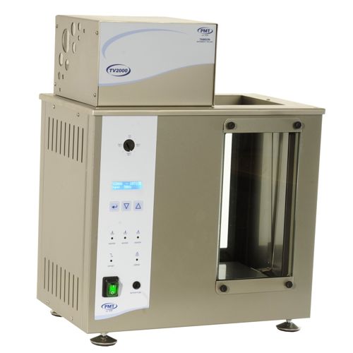 The TV2000 ASTM D2170 bath is used for the determination of kinematic viscosity of liquid asphalts (bitumens), road oils and distillation residues of liquid asphalts (bitumens) all at 60°C (140°F) and of asphalt cements at 135°C (275°F). The Tamson TV2000 can be used for viscosity determinations at these temperatures. The TV2000 offers three positions for Cannon Fenske Opaque, Zeitfuchs Cross Arm or BS/IP/RF viscometers. The bath is completely conform ASTM D2170 and EN/ISO 12595.